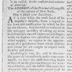 Several threatening Expressions against the Colonies were inserted in his Majesty’s Speech; our Petition, though we were told it was a decent one, that his Majesty had been pleased to receive it graciously, and to promise laying it before his Parliament, was [huddled]into both Houses amongst a Bundle of American Papers, and there neglected. The Lords and Commons in their Address, in the Month of February last, said, “that a Rebellion at that Time actually existed within the Province of Massachusetts Bay; and that those concerned in it, had been countenanced and encouraged by unlawful Combinations and Engagements, entered into by his Majesty’s Subjects in several of the other Colonies; and therefore they besought his Majesty, “that he would take the most effectual Measures to inforce due Obedience to the Laws and Authority of the supreme Legislature.”— Soon after the commercial Intercourse of whole Colonies, with foreign Countries and with each other, was cut off by an Act of Parliament; by another, several of them were intirely prohibited from the Fisheries in the Seas near their Coasts, on which they always depended for their Sustenance; and large Reinforcements of Ships and Troops were immediately sent over to General Gage.
