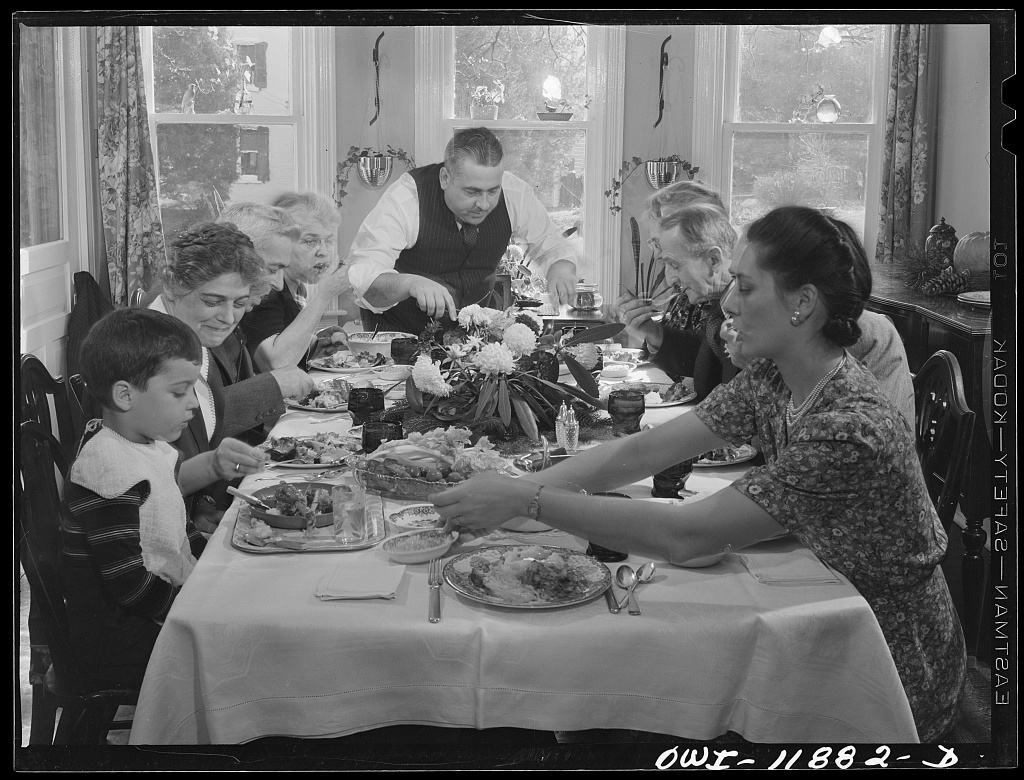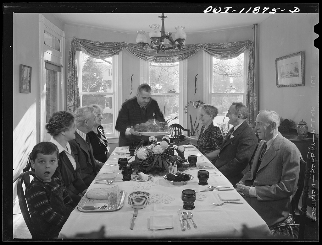 Thanks to the “Farm Security Administration – Office of War Information photograph collection” at the Library of Congress we can see an example of what “the people’s Thanksgiving” was like in 1942 at the home of Mr. and Mrs. Earle Landis in Neffsville, Pennsylvania.
