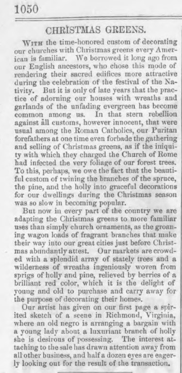According to the December 25, 1575 issue of Harper’s Weekly, Americans were using evergreen garlands and wreaths more to decorate their homes for Christmas. The decorations might have been changing, but people still yearned to go home for Christmas.
